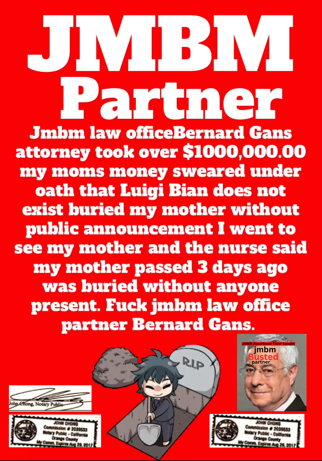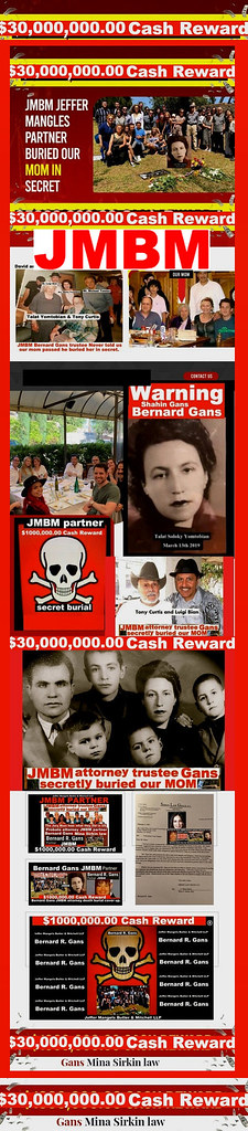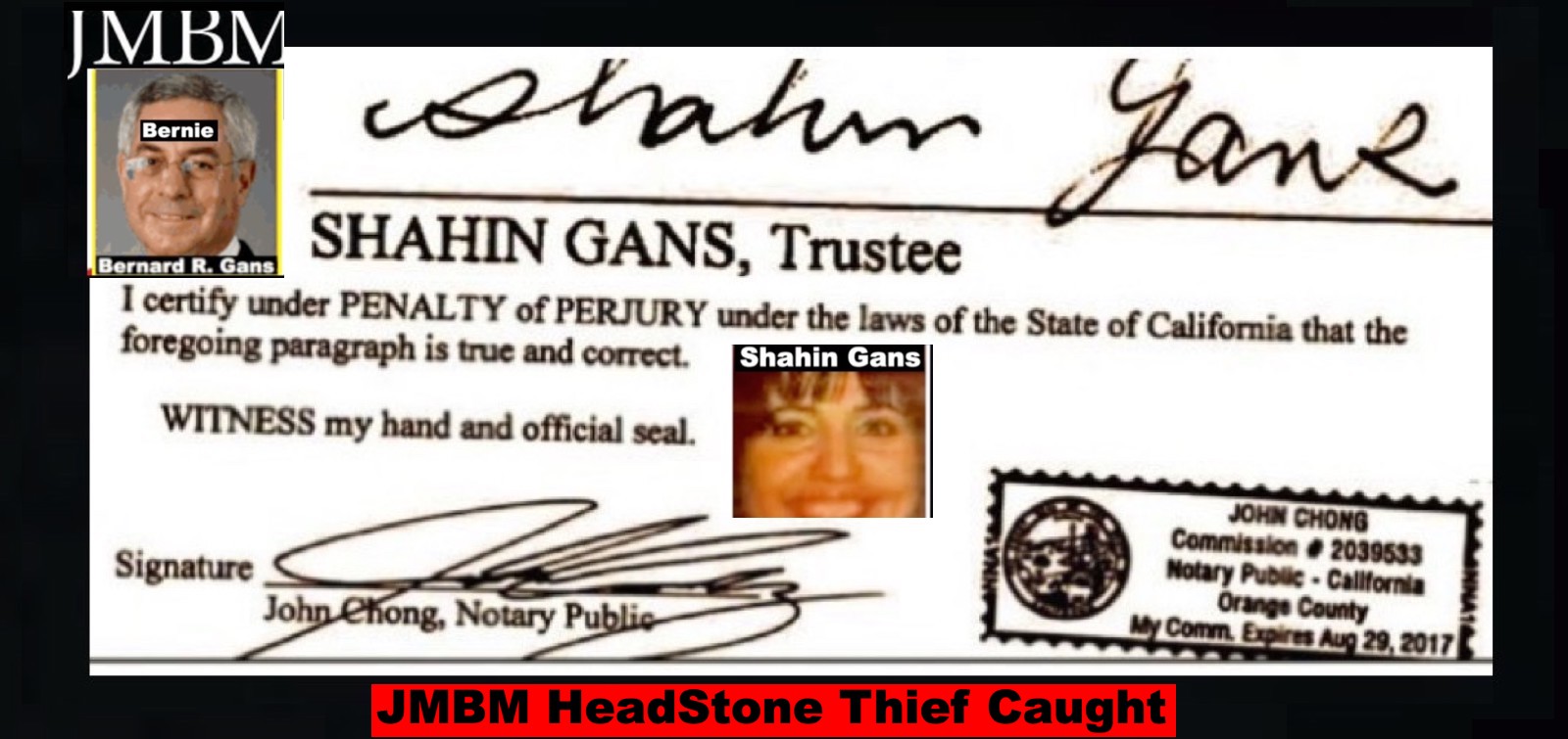 76 year old Century city JMBM busted attorney Bernard Reginald Gans known as Bernie graduate of Santa Barbara university married to Shahin Gans 50 years of success to satisfy his wife he made one stupid mistake and it all crashed down. Well done Bernie well done.Bernard R Gans Articles Jeffer Mangels Butler & Mitchel LLP