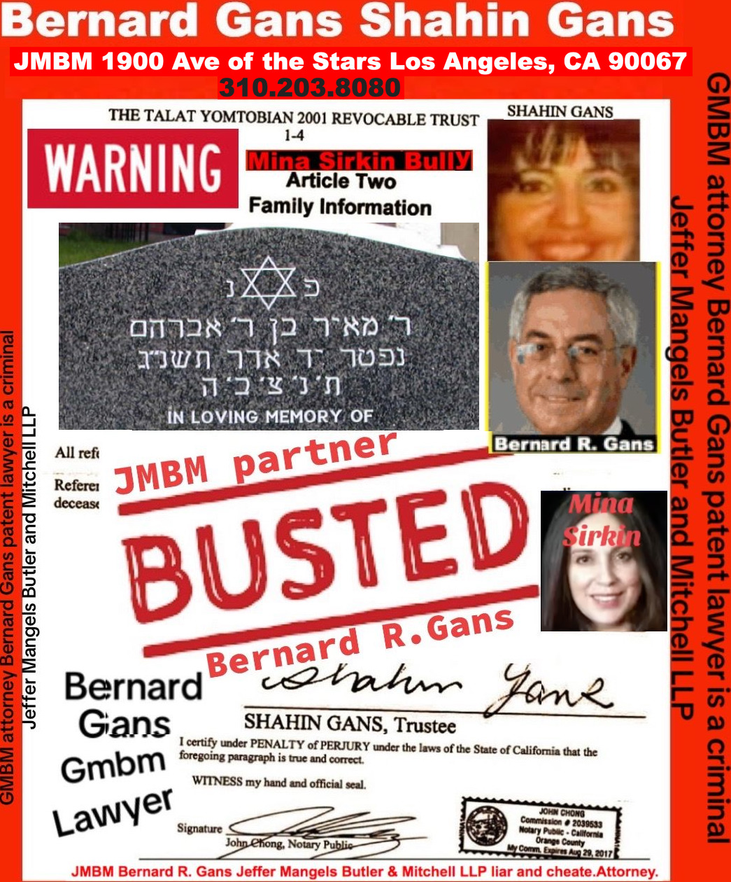 California Business Lawyers Jeffer Mangels Butler & Mitchell LLP partner Bernard gans engaging in criminal acts forging illegal documents.